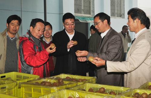 孙其信校长、赵忠常务副校长在猕猴桃试验站察看猕猴桃存储保鲜情况