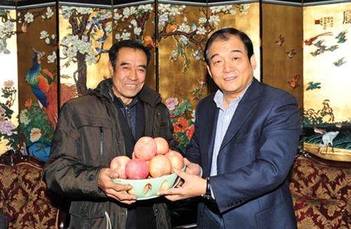 白水县果农请张光强书记品尝他们丰收的苹果