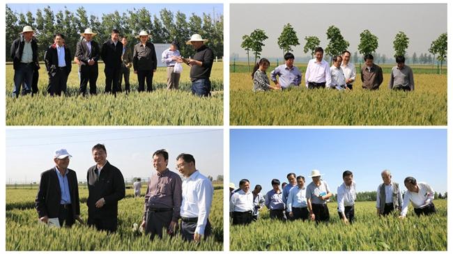 孙其信与我校20多名育种专家先后赴河南洛阳、荥阳、驻马店、南阳进行了考察。在洛阳,孙其信校长到洛阳市农林科学院小麦新品种示范园和孟津旱作小麦试验场进行现场观摩,听取了科研人员关于示范田建设、小麦品种栽培管理等方面情况的介绍,查看了我校各小麦品种在示范田的表现情况。在河南荥阳我校小麦试验示范站,孙其信校长了解了我校15个小麦新品种、100多个试验材料在试验示范站进行试验的情况,并到我校小麦新品种示范园区、小麦新品系鉴定试验园区进行了现场观摩。在驻马店,孙其信校长一行到我校小麦新品种示范园进行现场观摩,了解了园区建设情况,现场查看了我校10个小麦新品种在当地的表现情况。在南阳,孙其信校长考察了位于南阳市宛城区茶庵乡老秦营村的我校小麦新品种示范园。