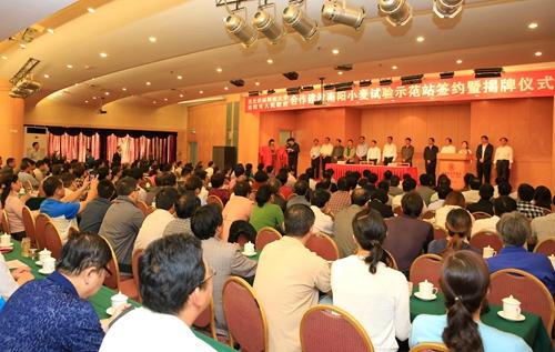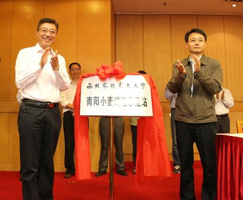 孙其信校长与南阳市程志明市长共同为试验示范站揭牌