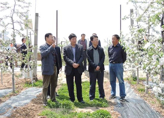 4月25日,陕西省气象局副局长杜毓龙、延安市气象局局长赵榆飞、洛川县气象局副局长高志斌等一行来我院洛川苹果试验示范站,检查指导洛川苹果试验站和延安市气象局合作开展的果业气象研究工作。