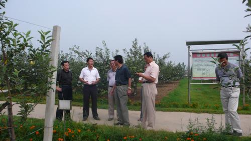 8月10日上午,省果业局副局长张兴瑞、总农艺师陈陵江、加工流通处处长王凤山、陕西师范大学仇农学教授等在渭南市果业局局长王鹰林的陪同下到我校白水苹果试验站考察指导工作。