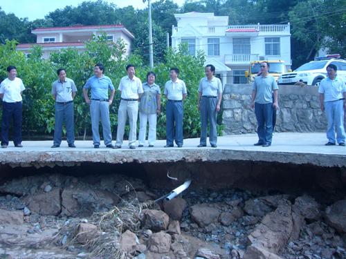 7月23 日晚上,山阳县遭受了百年一遇的大暴雨,倾盆而下的暴雨一直肆虐到7月24日9时30分。暴雨形成的滔滔洪水冲垮了我校核桃板栗试验站核桃园旁的河堤,卷走了园内的机井房和高压杆,毁坏了生产路及其他园内设施。灾情发生后,学校领导高度重视,孙武学校长指示以人为本,迅速救灾。李华副校长带领推广处、林学院及试验站负责人等急赴山阳指挥救灾工作。