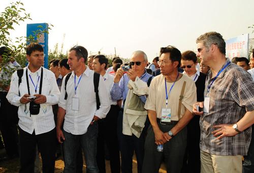 开幕式前,与会专家参观考察了我校白水苹果试验示范站,我校在白水县指导建立的杜康镇冯家塬百亩示范园、林皋镇可仙村综合示范园、林皋镇林皋村矮化示范园。意大利国家果树研究所所长、皮亚琴察大学教授卡罗•费德盖里高度肯定了我校白水苹果试验示范站所展示和推广的苹果栽培模式。他说,这种矮砧集约的栽培模式将改变传统,引领中国苹果未来的发展方向,他祝愿中国苹果产业有更加美好的前景。