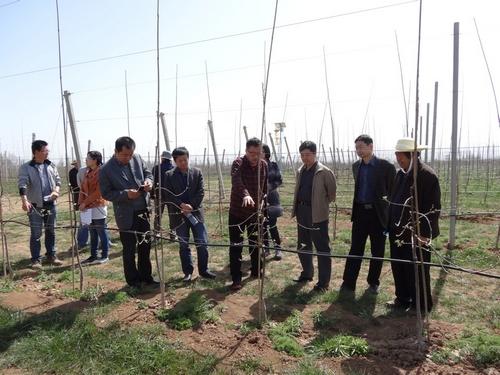 3月26日下午,省果业局副局长范海龙一行在宝鸡市果菜局及千阳县县委、县政府领导陪同下,到我校千阳苹果试验示范站检查指导工作。