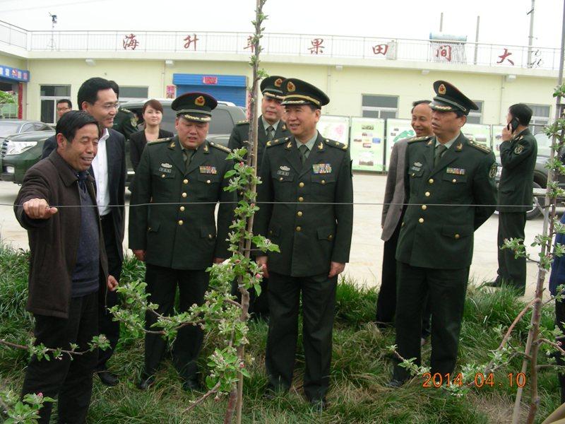 4月10日下午,陕西省军区政委林淼鑫少将在千阳县检查民兵训练场地途中,考察了我校千阳苹果试验示范站。试验站首席专家李丙智教授和站长李高潮副教授向林淼鑫少将一行介绍了我校研发的苹果矮砧栽培技术新模式。宝鸡市军分区司令员李春红大校、宝鸡市副市长景耀平、国家苹果产业技术体系首席科学家韩明玉教授、千阳县委书记郝晋升、副县长崔省强等陪同考察。