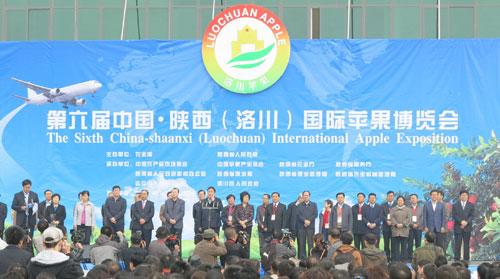 10月17日上午,由农业部、陕西省人民政府主办第六届中国·陕西(洛川)国际苹果博览会在“苹果之都”——陕西洛川县开幕。全国苹果产业协会成员单位负责人、国内各苹果主产区、基地县主管部门和企业(合作社)代表、陕西苹果出口国在华经销商、国内外知名果品营销加工企业代表、国内外知名苹果专家等1000余人参加博览会。