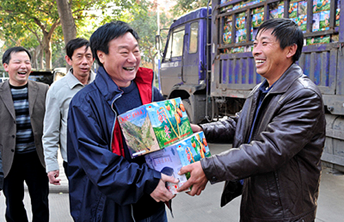 11月6日下午,榆林米脂县孟岔村枣农孟永兵冒着大雪驱车十几小时来到我校,为我校送来4000盒鲜食红枣,感谢学校专家把科学技术送到田间地头,帮助自己致富。副校长李华代表学校接收了“致富枣”,并和果农及专家进行了亲切交流。