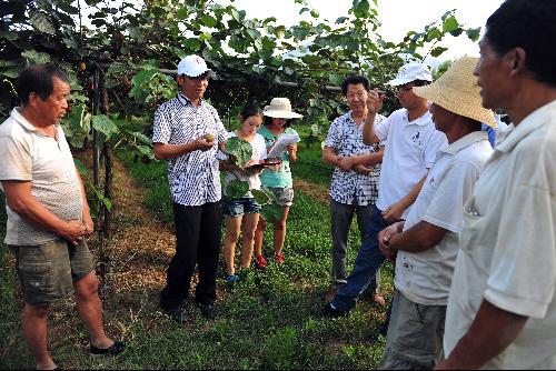 随后,笔者来到眉县金渠镇黄家坡四组,见到了村里的猕猴桃种植示范户张耀杰。张耀杰种植猕猴桃已经有13个年头,起初他种猕猴桃的技术只是听别人讲、从书上学,技术不全面,时常会遇到束手无措的情况。“过去碰到自己解决不了问题,就到处找人问,既麻烦又耽误事。自从西北农林科技大学的农科专家来了,有什么问题就直接给专家打电话,如果是小问题电话里就能解决,碰到大问题专家就亲自到地里解决。”张耀杰表示,一般头一天打电话第二天专家就来了,有时候早上打电话下午专家就在地里了,碰到专家自己来不了的情况,专家就会联系西北农林科技大学里相关的技术团队来。