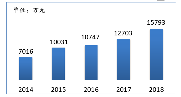 2014-—2018年到位科技推广经费情况(不含财政部3000万元专项)