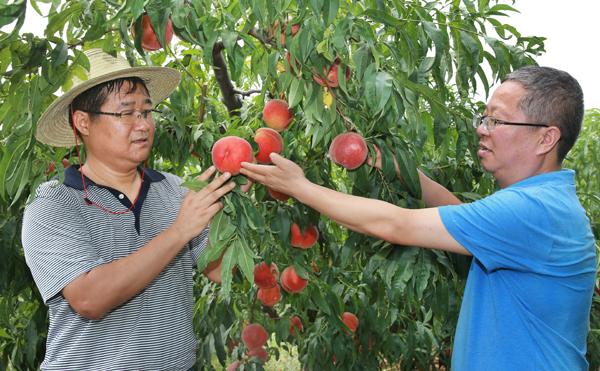 7月31日,由我校专家韩明玉教授率领的专家团队,历经十几年的试验研究,选育的中熟鲜食桃 “秦桃1号”和中熟鲜食黄肉桃“秦桃2号”两个新品种在杨凌通过了陕西省果树品种审定委员会组织的专家初审。